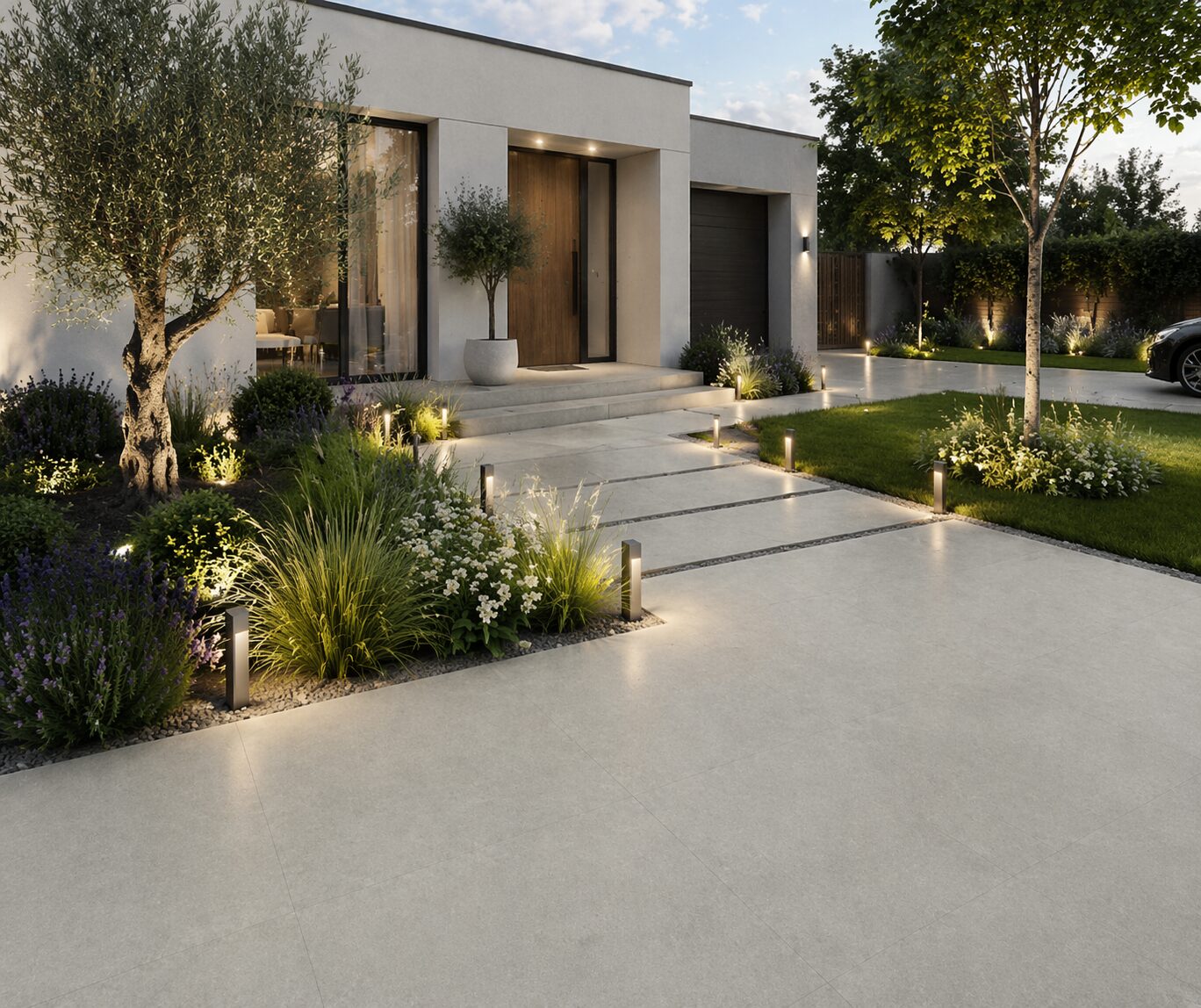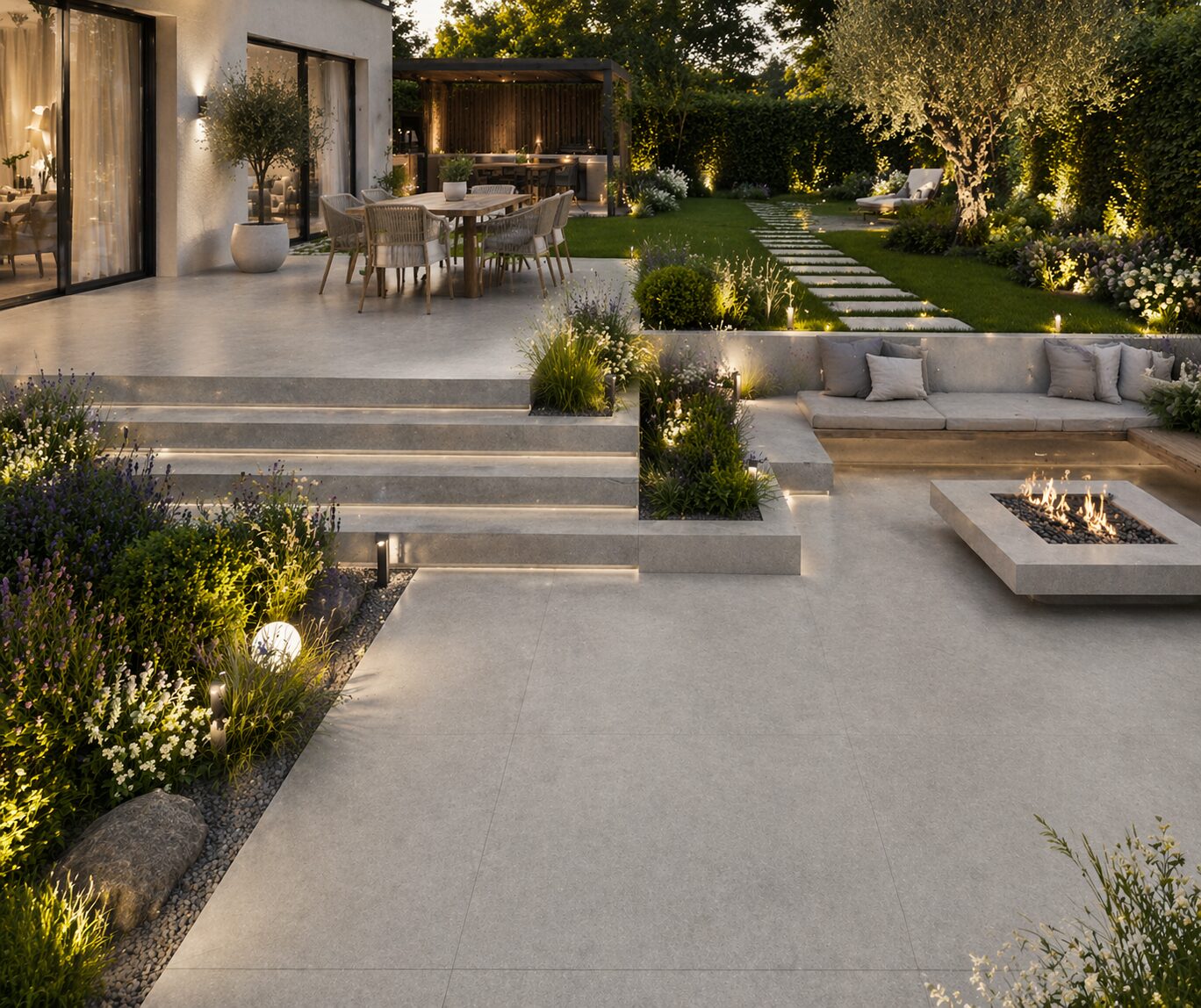 Dlažba v odtieni taupe prináša moderný a nadčasový vzhľad exteriéru. Vysoká odolnosť a protišmykový povrch zaručujú bezpečné a dlhodobé používanie.