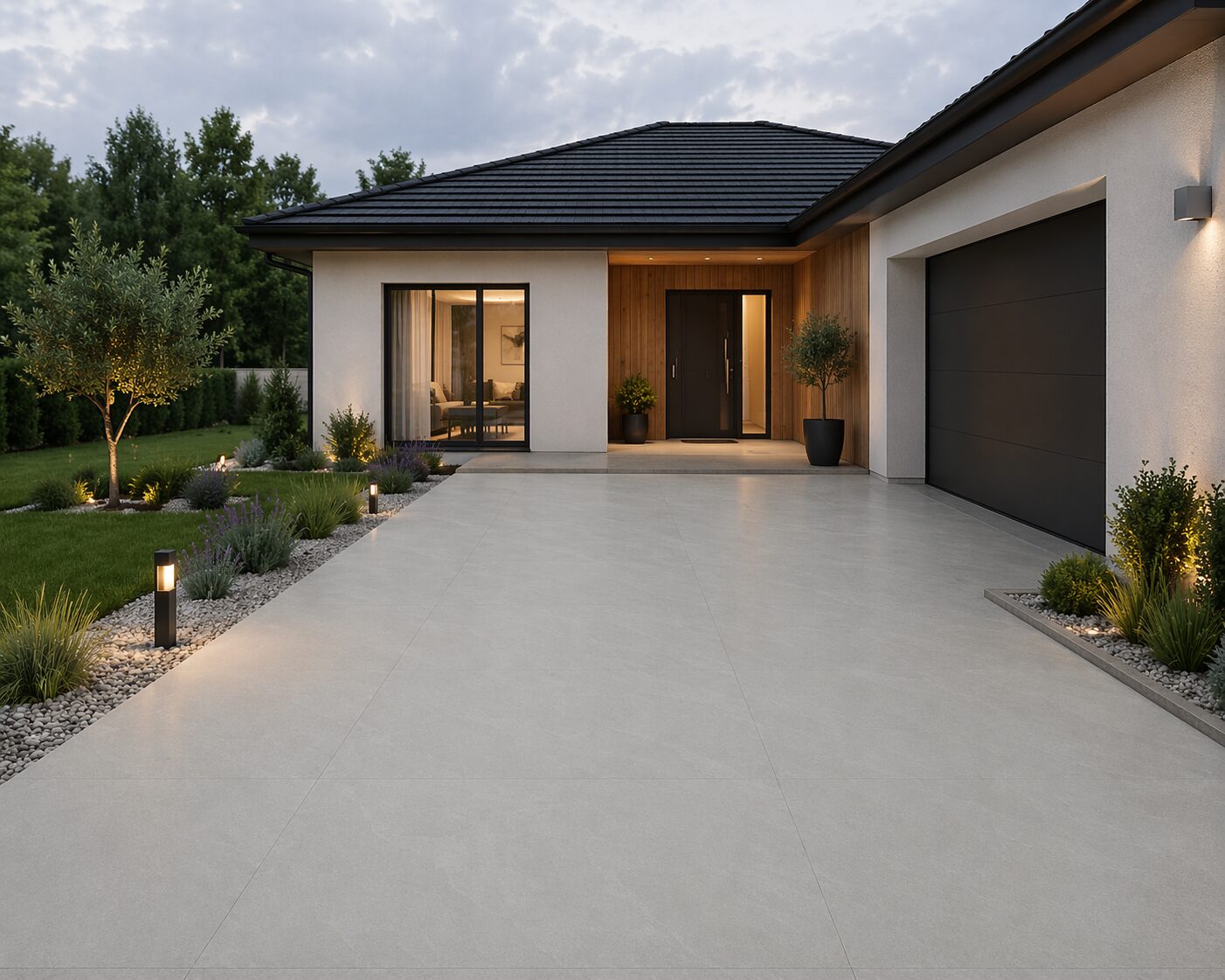 Dlažba v mandľovom odtieni dodá exteriéru teplý a prirodzený vzhľad. Vysoká odolnosť a protišmykový povrch zaručujú bezpečné a praktické používanie.