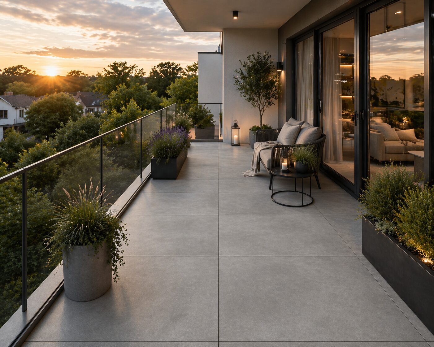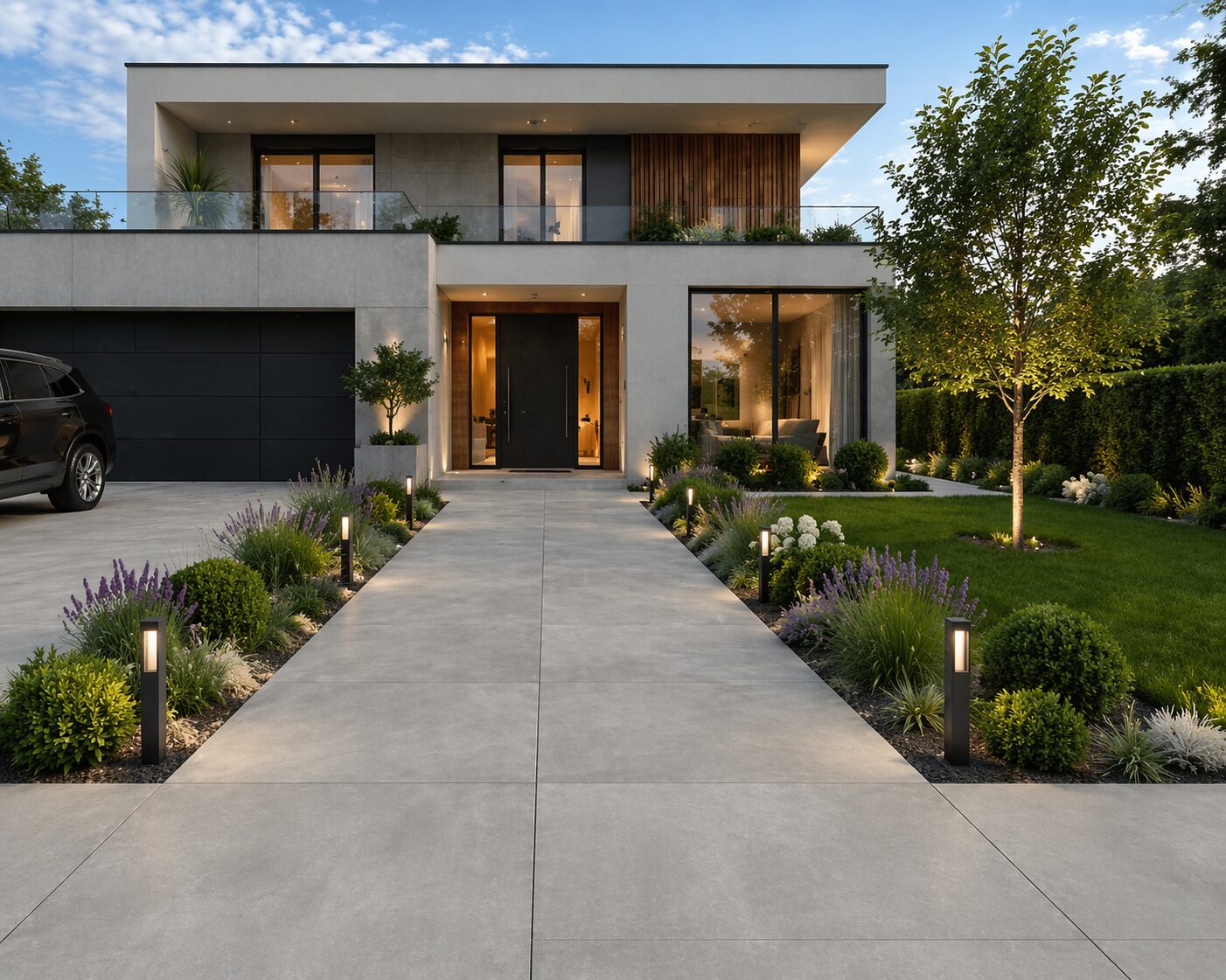 Veľkoformátová sivá dlažba dodá exteriéru moderný a luxusný vzhľad. Je odolná, bezpečná a ideálna pre štýlové terasy aj chodníky.
