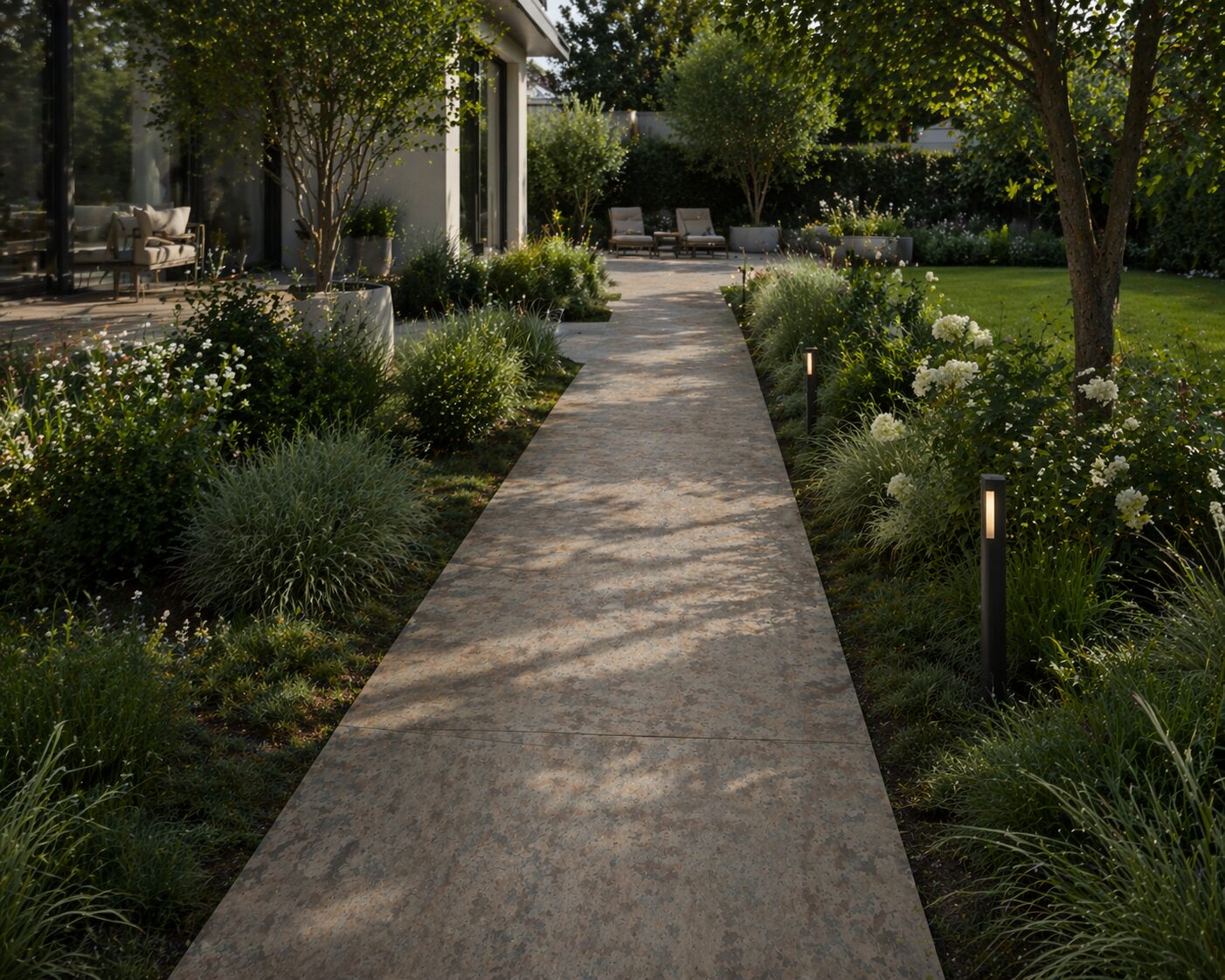 Dlažba v hnedo-rudom odtieni prináša do exteriéru teplý a prirodzený charakter s jedinečnými farebnými variáciami. Vysoká odolnosť a protišmykový povrch zaručujú bezpečné a dlhodobé používanie.