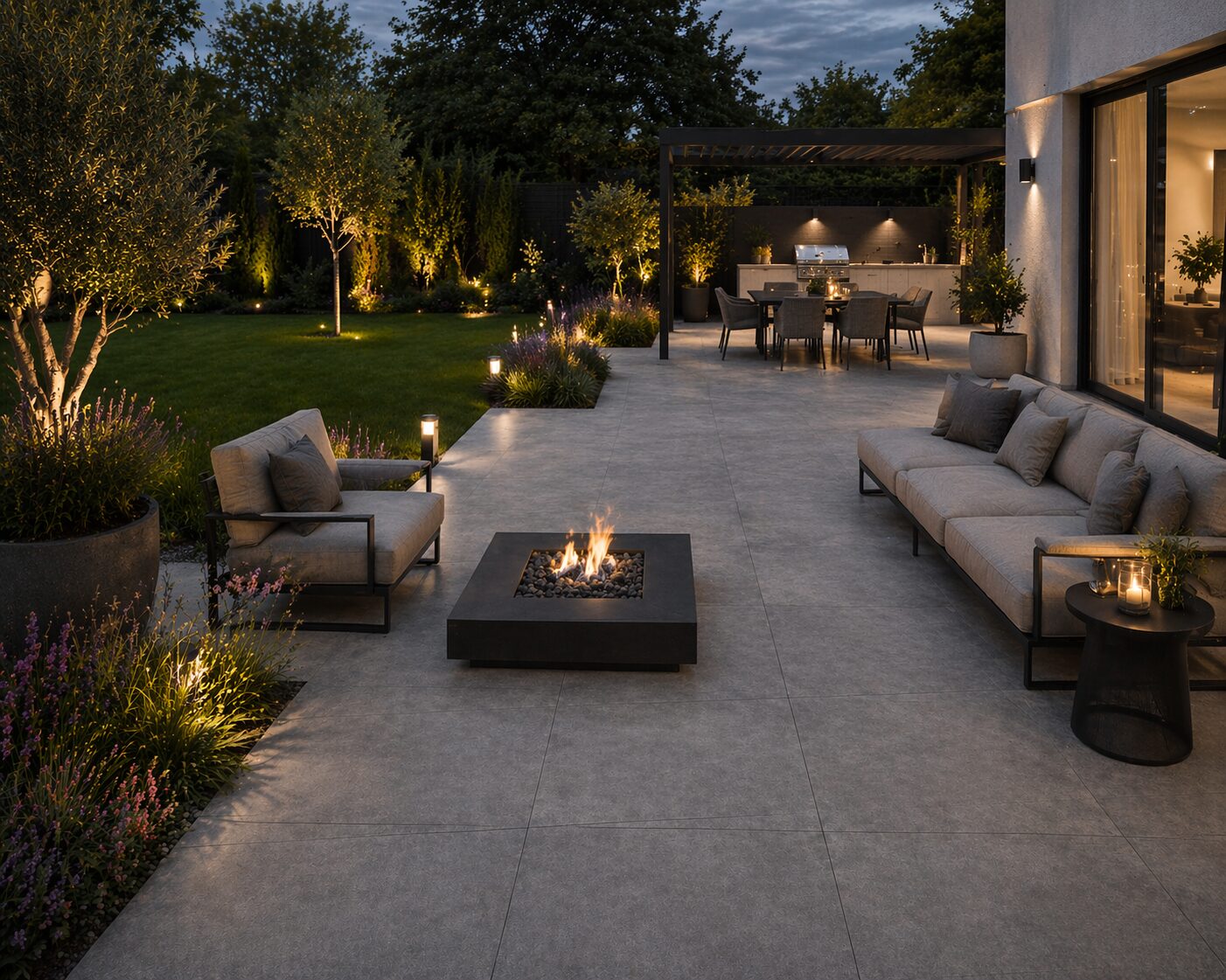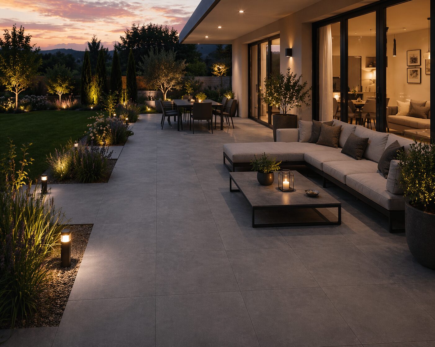 Antracitová dlažba s betónovým vzhľadom dodá exteriéru moderný a elegantný charakter. Vysoká odolnosť a protišmykový povrch zaručujú spoľahlivé používanie aj v náročných podmienkach.