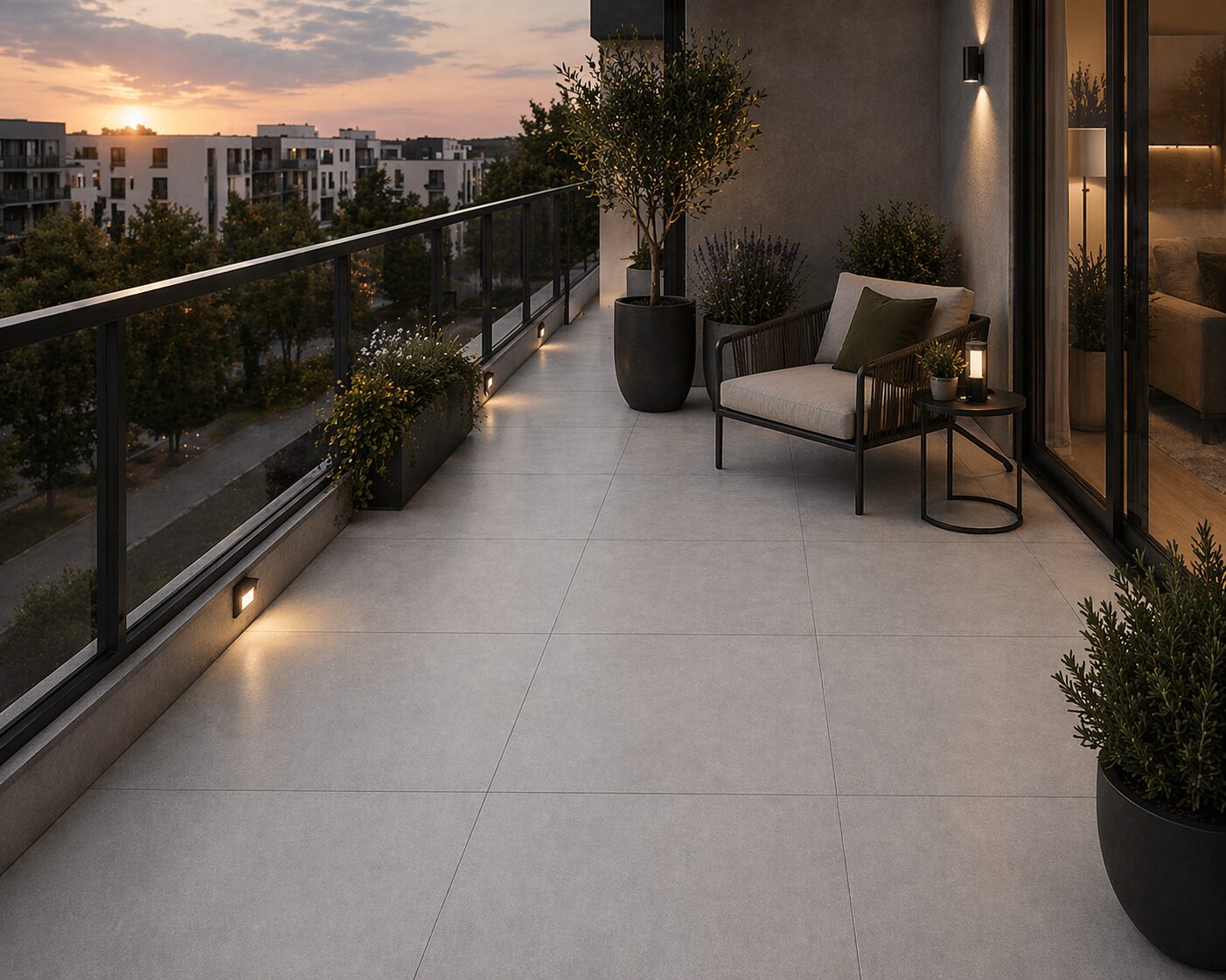 Sivá dlažba s betónovým efektom dodá exteriéru moderný a čistý vzhľad. Vysoká odolnosť a protišmykový povrch zaručujú bezpečné a praktické využitie.